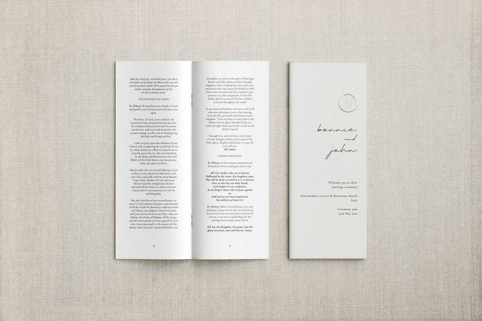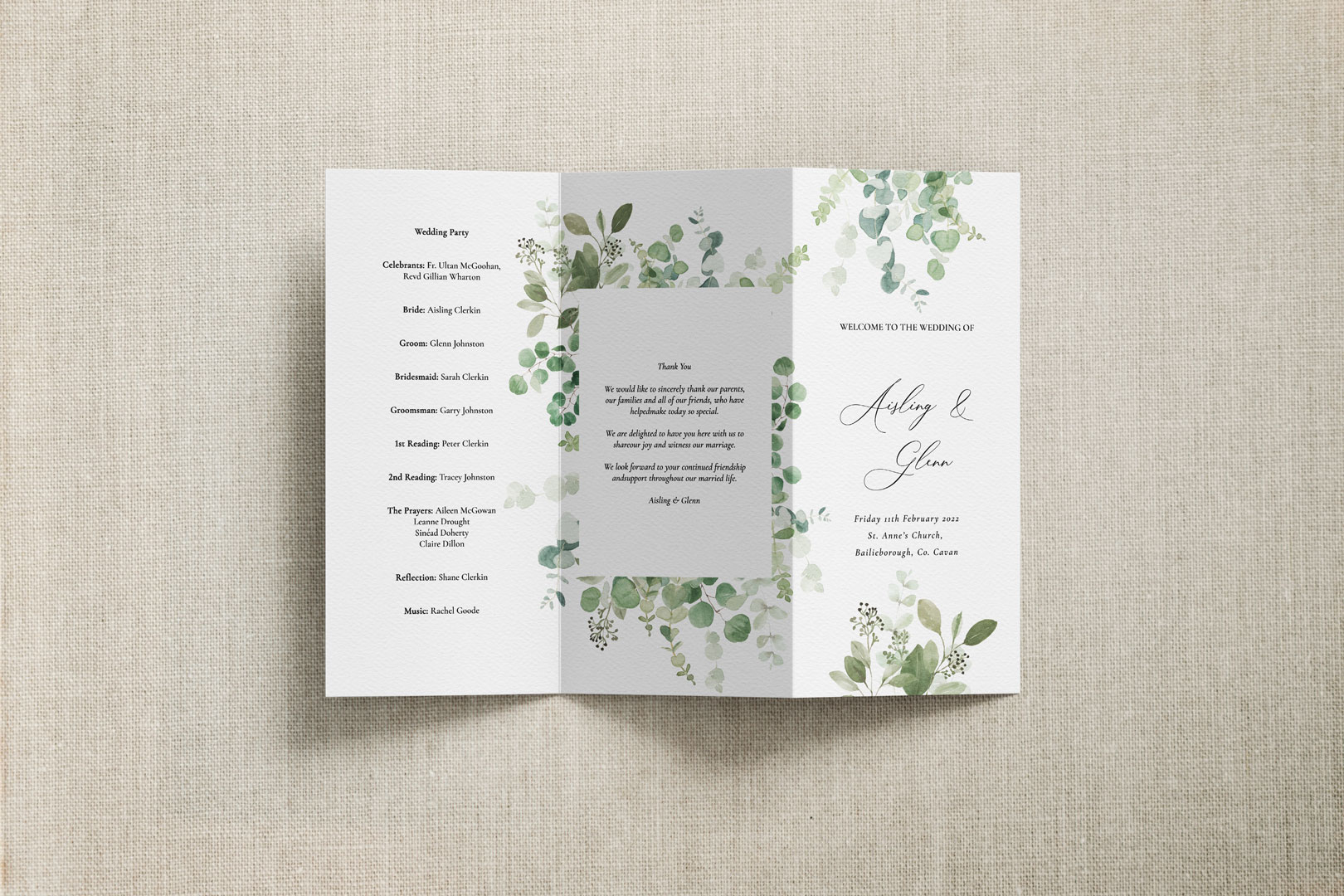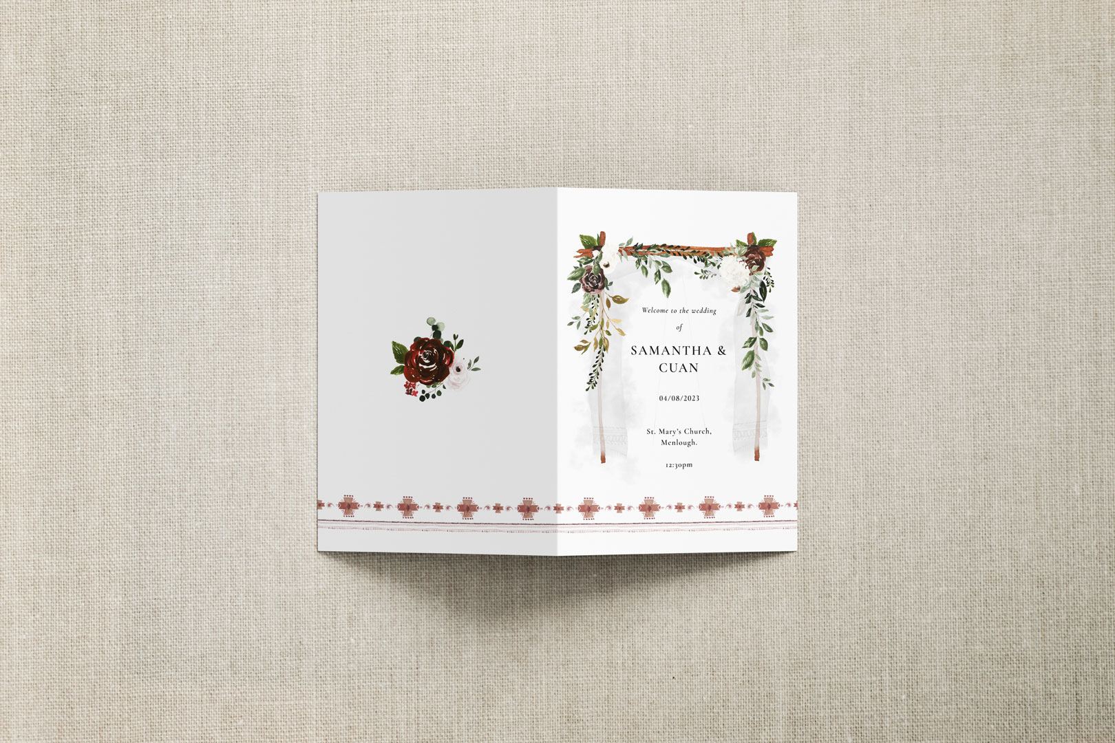 We do three popular styles of mass ceremony booklets, full booklet in 2 sizes A5 & A4 thin, trifold program & single mass card. We can provide you with word templates for all.